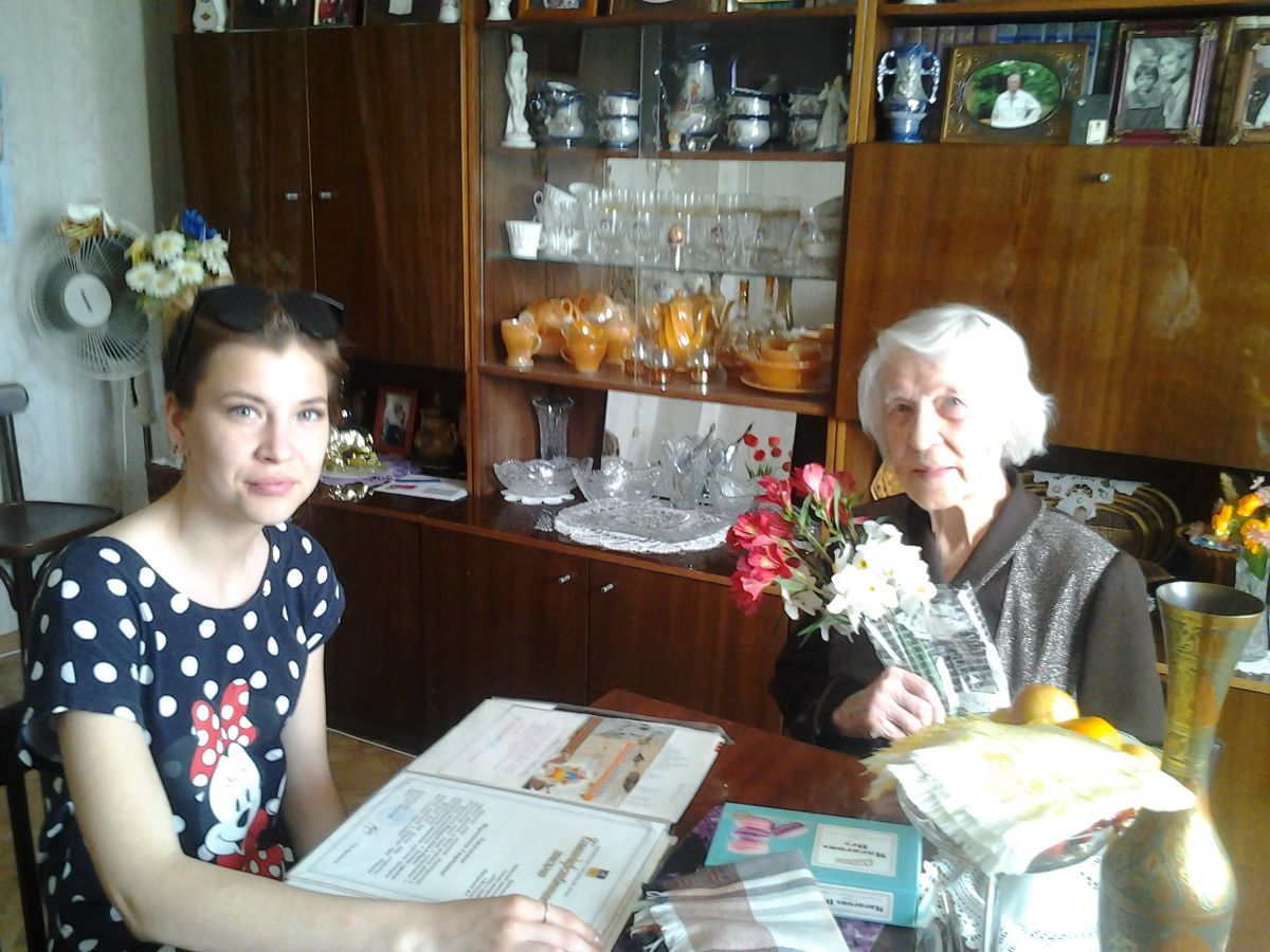 Специалист ГКУ СО «Волжский ЦСОН» совместно с волонтерами г. Волжского 7 мая 2018 г. посетили на дому, поздравили с наступающим праздником Победы и вручили цветы участнице Великой Отечественной войны Меркушевой Марионелле Георгиевне. Подвиг женщин, воевавших на фронте во время Великой Отечественной войны, почитаем, и воспринимается на одном уровне с подвигом мужчин-фронтовиков. Они заслуживают того, чтобы о них знали, помнили и не забывали.В ходе задушевной беседы Марионелла Георгиевна рассказала о своей биографии, поделилась военными и послевоенными воспоминаниями, прочитала свои стихи и стихи других авторов о тех далеких временах. Марионелла Георгиевна во время войны была санитаркой на санитарном поезде. Ей, как и всем в те суровые времена, пришлось столкнуться с суровыми бытовыми условиями, тяжелой физической и эмоциональной нагрузкой.