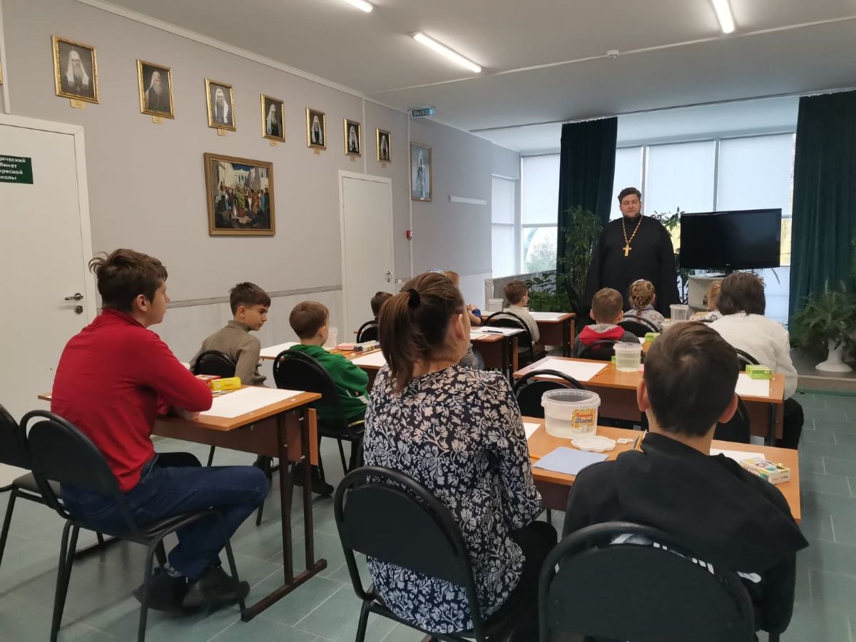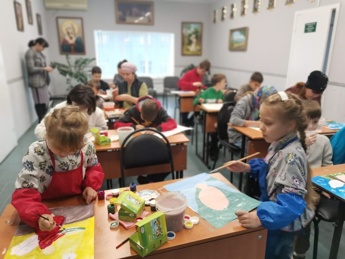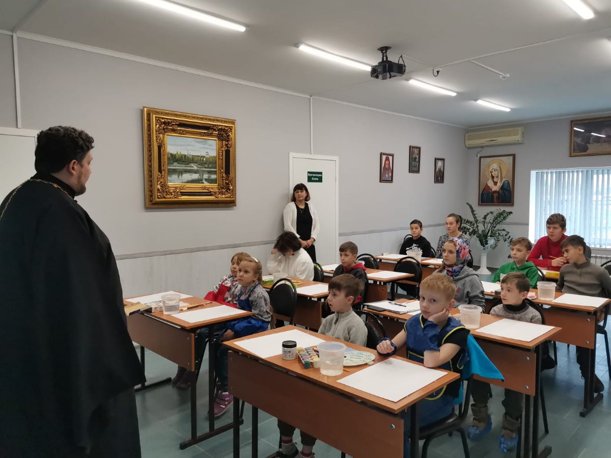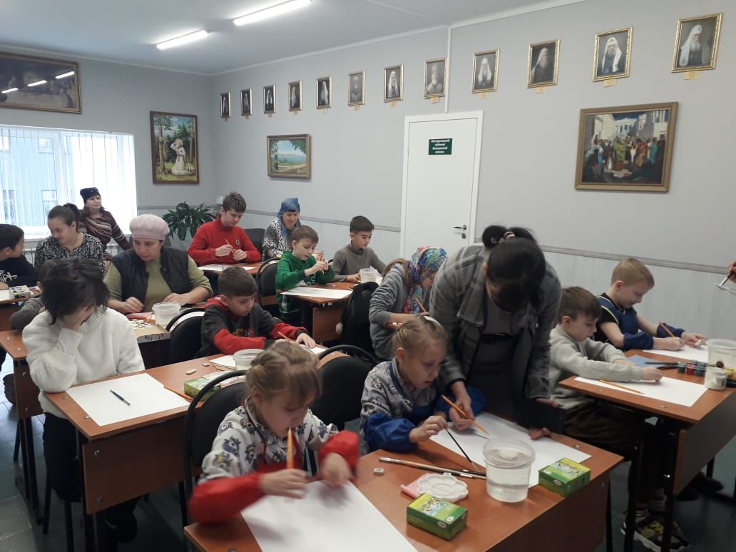 Акцию «Крылья ангела» приветственным словом открыл иерей храма Серафима Саровского Дионисий Данилов. Далее детей посадили за столы, где они приступили к творческому процессу рисования Ангела.