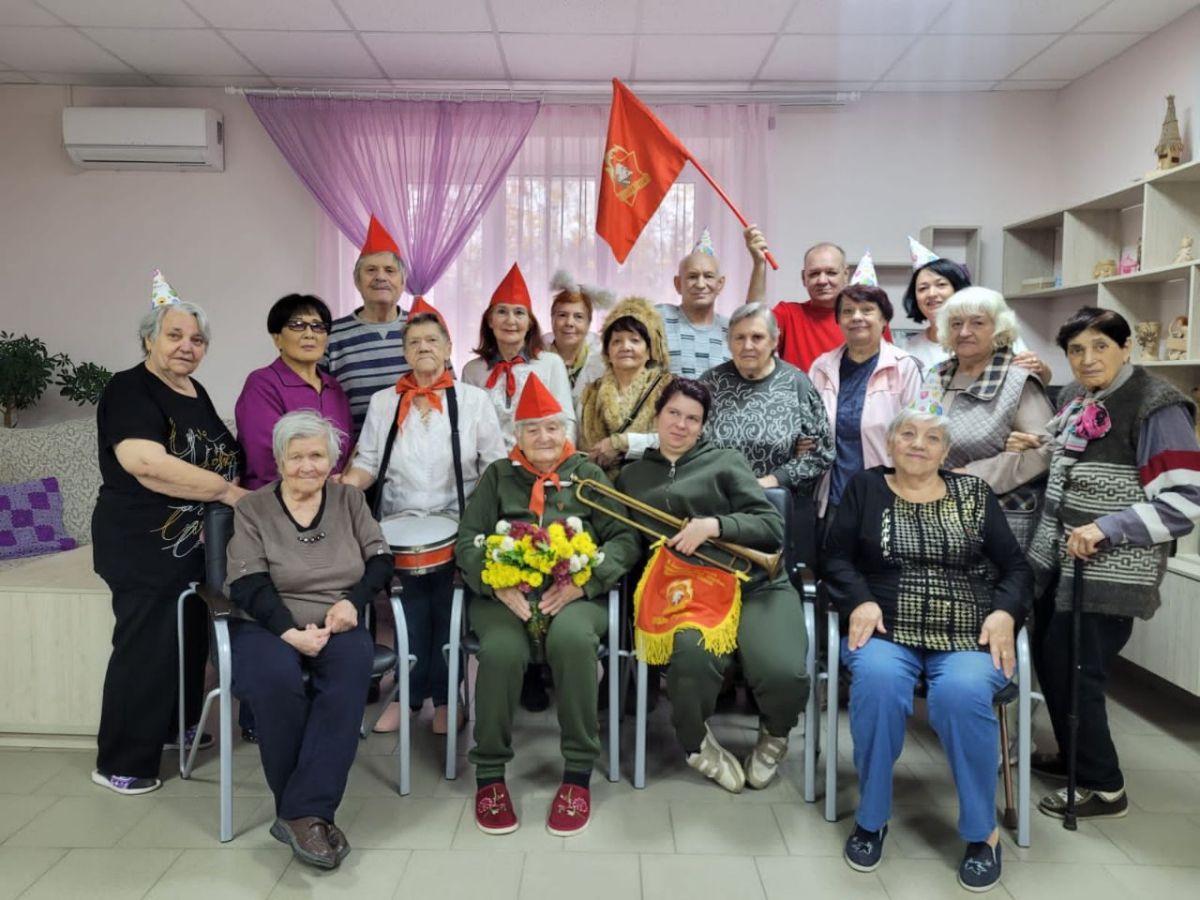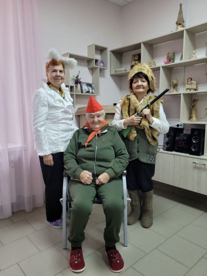 Получатели социальных услуг инсценировали сценки, прочитали поздравительные стихотворения и подарили букет цветов для Ильченко Прасковьи Филипповны.