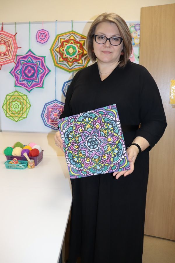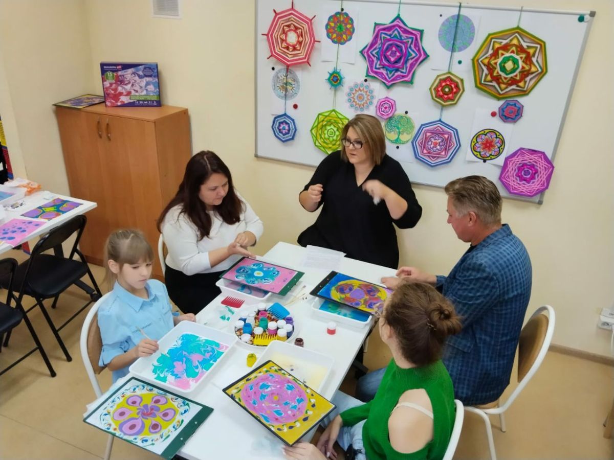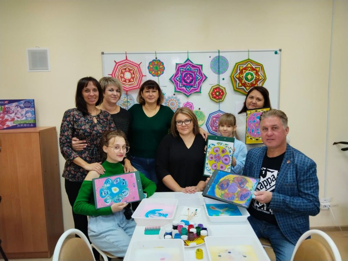 После доклада, психолог вместе с гостями показали мастер-класс "Арт-терапевтические возможности применения метода мандала-терапии в работе психолога как средство снижения эмоционального напряжения" «Рисование мандалы красками ЭБРУ». Предлагаемый мастер-класс ориентирован на оказание психологической помощи и поддержки детям и взрослым, испытывающим психоэмоциональные перегрузки в повседневной жизни.